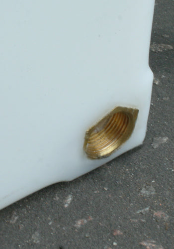 Each tank has brass outlet moulded into them during the manufacturing process. This outlet can be used to attached a tap or shut off valve. The size of the outlet depends on the size of the tank.